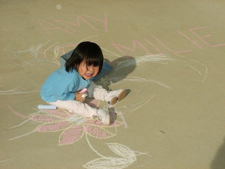 This afternoon Amy played outside and discovered sidewalk chalk. Actually it should probably be called driveway chalk, but regardless, she had fun playing with it.