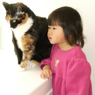 She has also been quite the parrot today. Dean spent the day working from home instead of the office. So when I called to him from the top of the stairs, she came over and stood next to me and said exactly what I said. She also will repeat things that I say to her. On occassion she'll walk up to me and say "Hi mommy". When she does this I answer her back with "Hi sweetie". She then has to say hi sweetie back to me. She has also heard us say "stop it" on more than one occassion, so now she will go up to the cats (who usually aren't doing anything at the time) and tell them to "stop it".