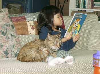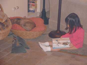 I think one of the things she enjoyed the most was the animals. Mushi the dog, and Kiwi the cat. She loved to give them their snacks and read to them, and play with them.