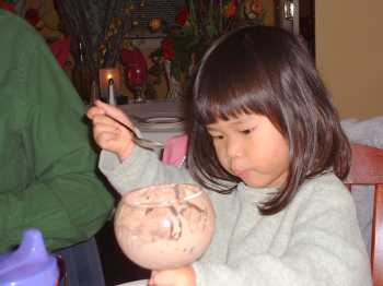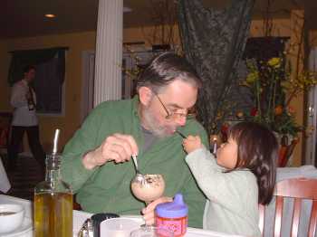 While visiting Oma & Pompo we went out for a very nice Italian dinner. The food was outstanding, but I think Amy really enjoyed the dessert the most. She shared Pompo's Chocolate Mousse and Oma's Pistachio Gelato. My Tiarmisu was not a big hit with her.
