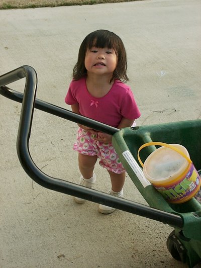 This afternoon after coming home from playing with John, Amy was whining and carrying on while I was trying to get dinner ready. I finally had enough and told her to go to her room. She however decided that she should go to the couch and told me this. When she got to the couch she climbed up on it and then told me she was in a time out. I couldn't help but laugh. She has only had one time out before this and that minute and a half was spent in her chair in her room. However this evening when she was sent to a time out for not listening to either of us, only her second one since she's been with us, she was not happy about it and cried for the two minutes she was in her chair. After which she calmed down and behaved the rest of the evening.