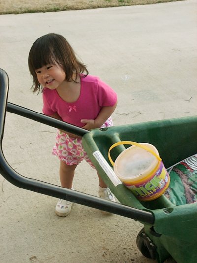 We decided today to do some landscaping in our backyard. It's been in desperate need of it for a while, and today seemed like a good time to get started. So first it was off to Home Depot to rent an auger, purchase some dirt and trees. We came home and Dean started digging the holes with the auger. I came next making the holes a little bigger with my shovel and then came Amy who had to push the dirt back into the holes we just dug - before the trees were planted. Fortunately we quickly found another spot for her to dig and play in that wouldn't fill back up what we had just taken out. Now after a long day of hard work, we have 5 new Leyland Cypress trees, 2 Pussy Willows, and 7 other assorted trees that I had gotten last year from the Arbor Day foundation. There is still more work to be done, but at least we've finally gotten started.