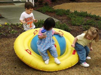 Today was a a busy day. We have been to Wal-Mart to pick up cupcakes for her class party tomorrow and order her cake for her party on Saturday. Then to John's house to play with him and another friend Jarret. That apparently wore her out so much, that she took a 3 hour nap this afternoon. She hasn't done that in I can't remember how long. But she woke up happy and then had to go back and play with John some more. Emilie was also around this afternoon, so the three of them got together to play.