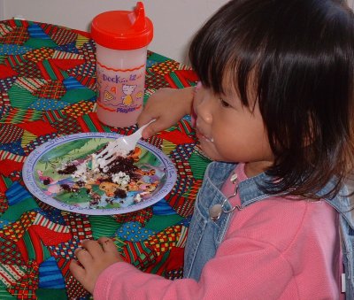 Amy had her birthday party today. It was a lot of fun and Amy got lots of neat stuff. Her friends John, Emilie, and Abbey all came over to help her celebrate.