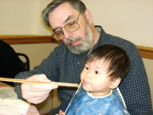 As you can see by one of todays pictures, she's getting bigger and stonger every day. The other picture is another one from our trip. Pompo and Amy enjoying a Chinese lunch.