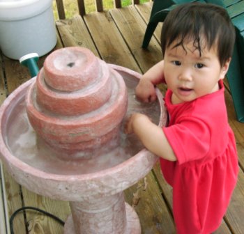 She has also discovered the fountain we have on the back deck. She is fascinated with water, wherever it may be. She is really enjoying her baths and managed to give herself one while playing with the fountain this evening. As you will see by today's pictures.