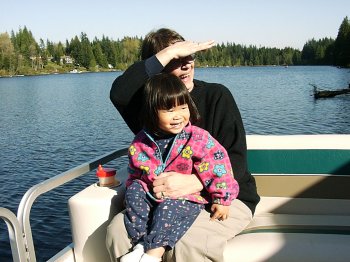 One of today's pictures was a school picture, taken this spring. Since we had the professional pictures taken in Seattle, we didn't order any of these, but did get one for free - so here it is. The other two are from our trip. One of Dean & his third grade teacher, and the other of Amy & Uncle Phil.