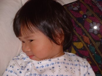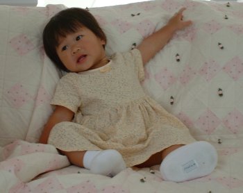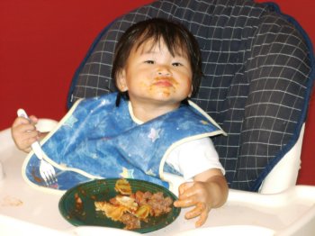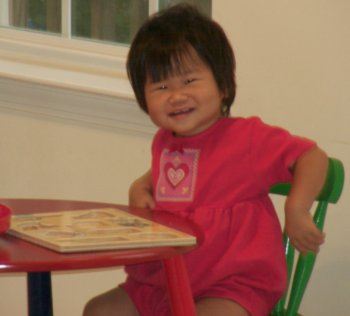 Amy has figured out how to better use crayons now, including coloring the livingroom wall. Her appetite is still as strong as ever and she likes spicy foods. We went out for Chinese one evening and she devoured everything we gave her, from Kung Pao chicken to my spicy pork in Garlic Sauce and Dean's 5 Taste shrimp.