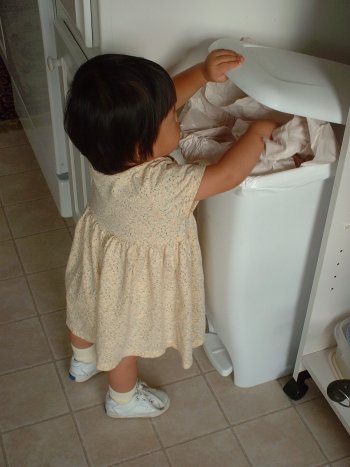 Amy has been imitating more and more. She said "my, my, my" the other day. She is singing more and generally babbling away. She is starting to help more around the house. She's figured out how to help throw away the trash, swifer the dining room and kitchen floors, and as always, wipe things with a rag.